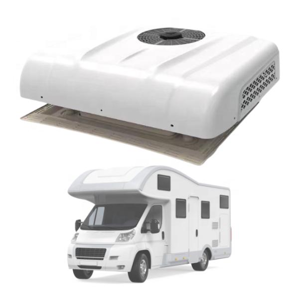 The unit is designed for rooftop installation, saving interior space and providing optimal airflow for cooling the cabin or living area of RVs, trailers, vans, and trucks.